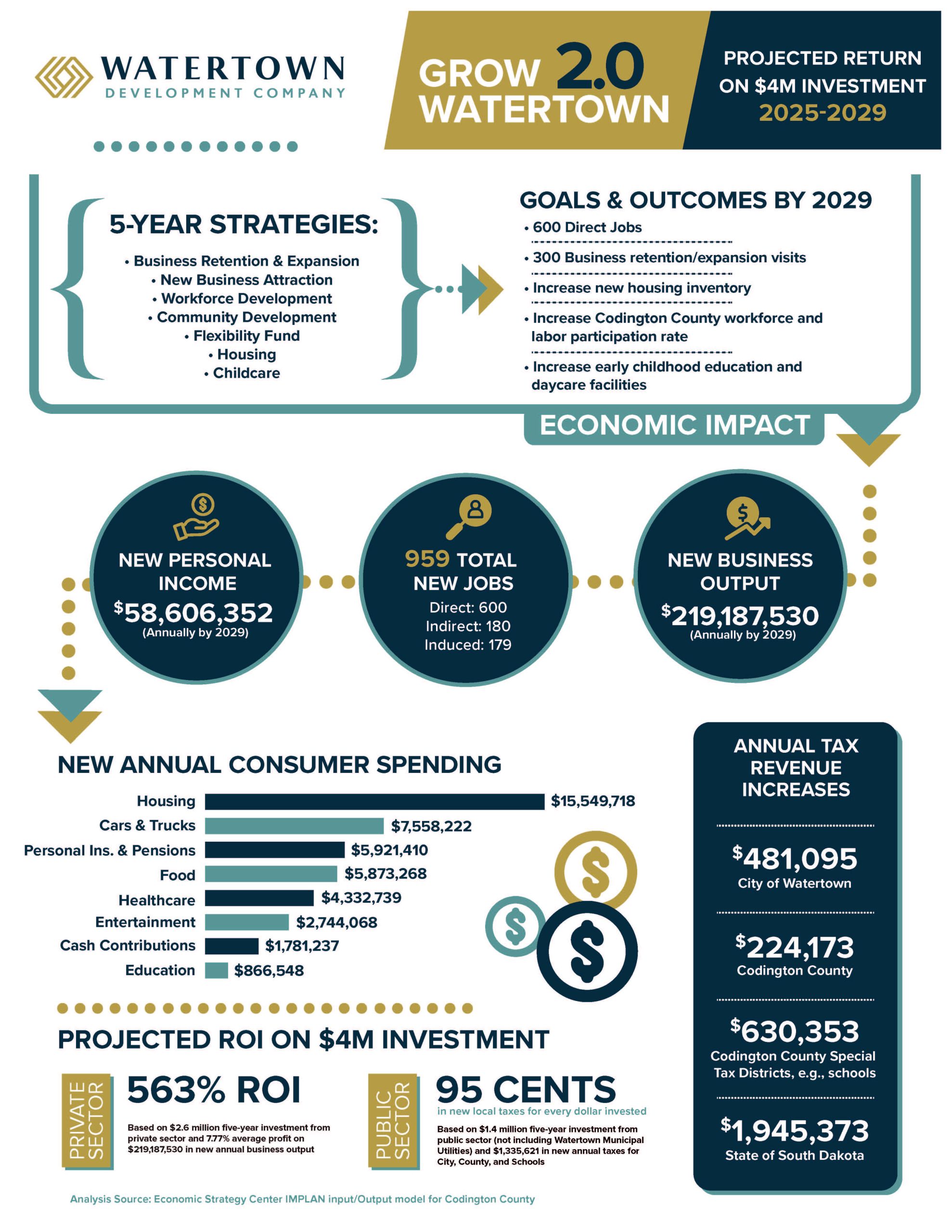 Public sector investors will receive annual tax revenue for South Dakota, Codington County, and its municipalitites and special tax districts that equal $2.25 for every $1.00 invested.